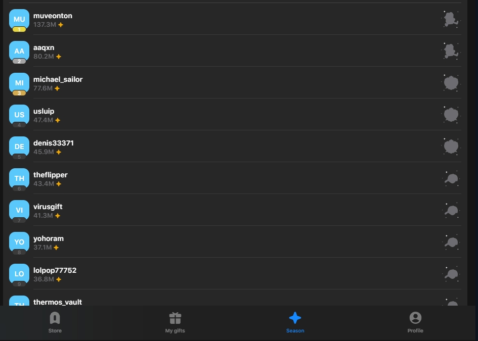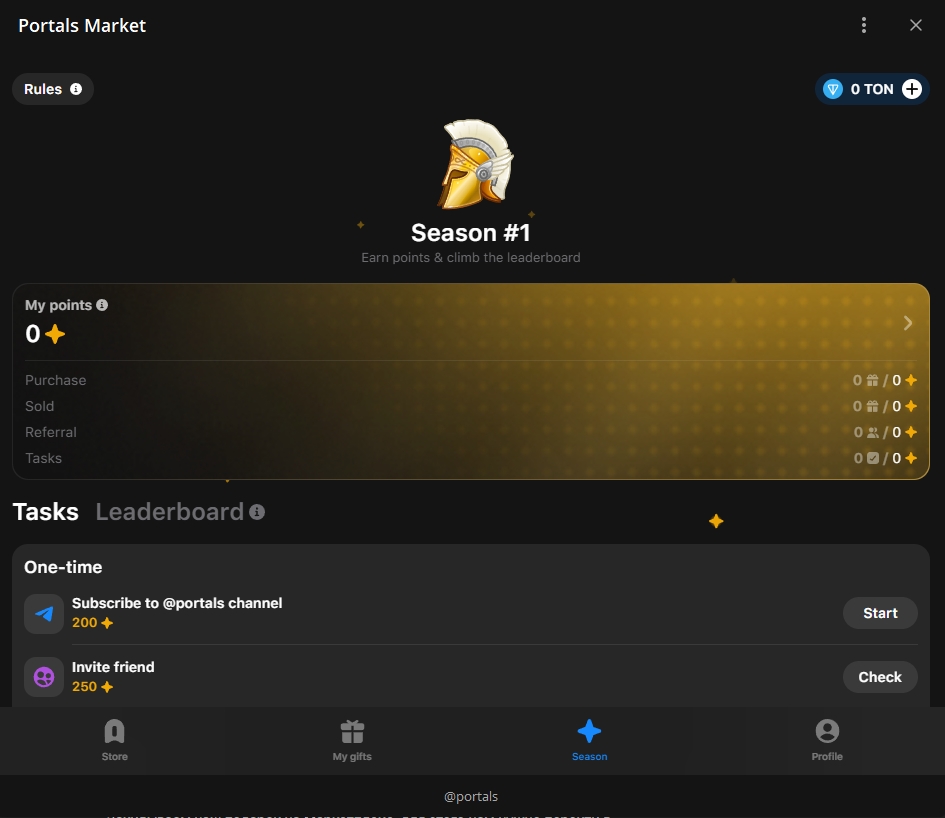 Раздел Season является главным по розыгрышам - за каждую покупку, продажу, действие рефералов, задания - вам будут начисляться специальные поинты.