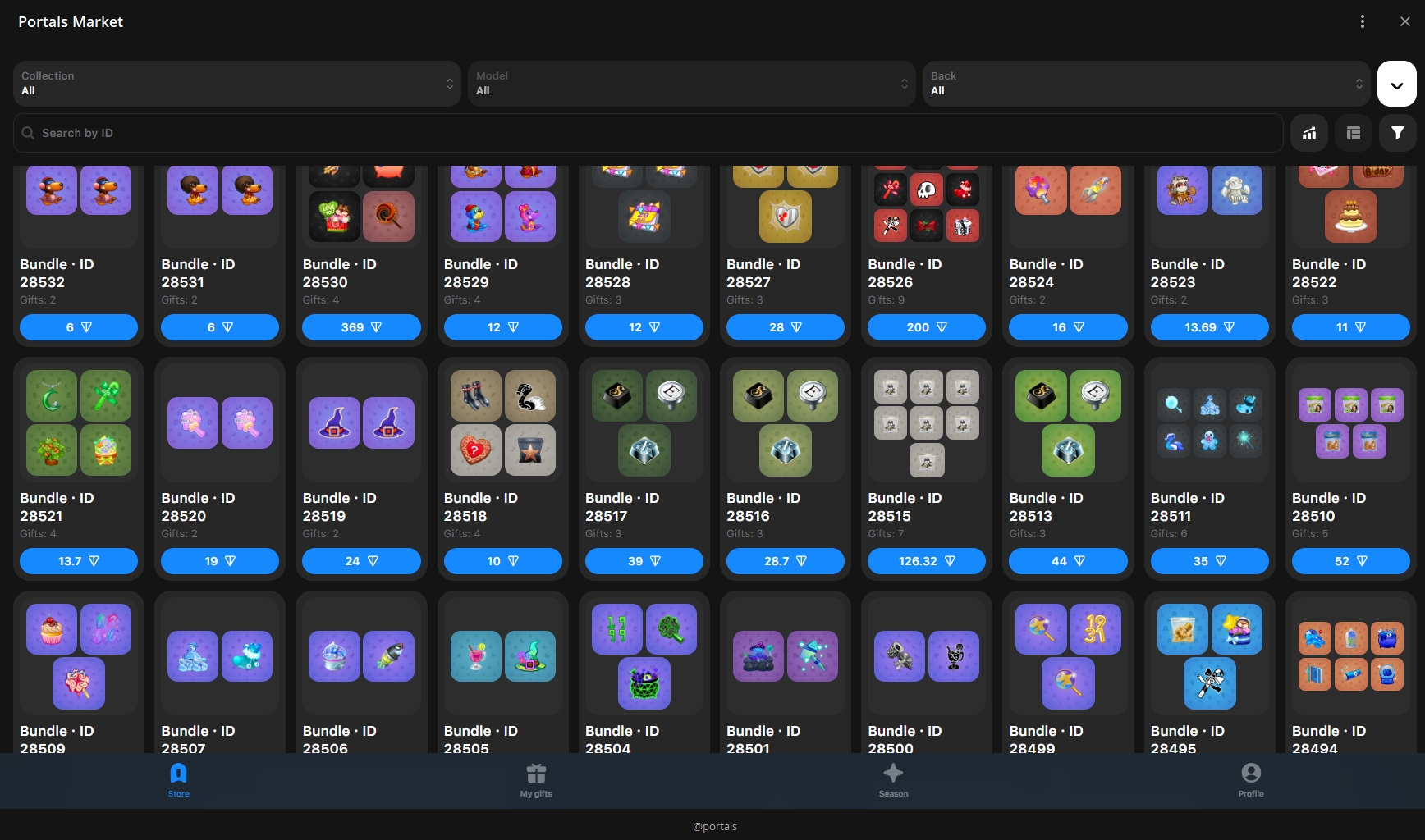 Ссылка на Portals . Аналоги: Tonnel, MRKT.