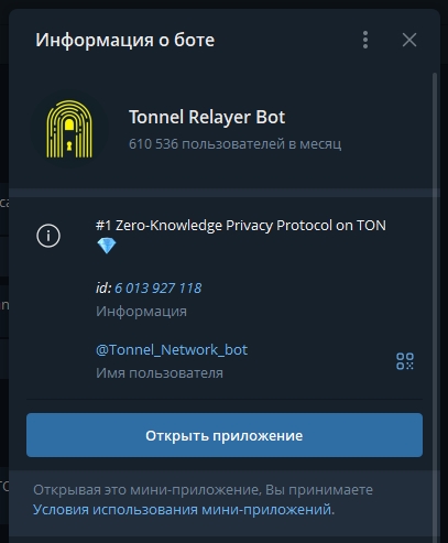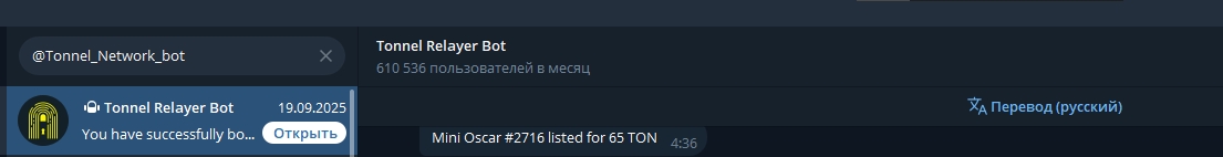 Начинаем наше знакомство с маркетплейсом Tonnel. 1. Нам нужно зайти перейти в бота Tonnel.