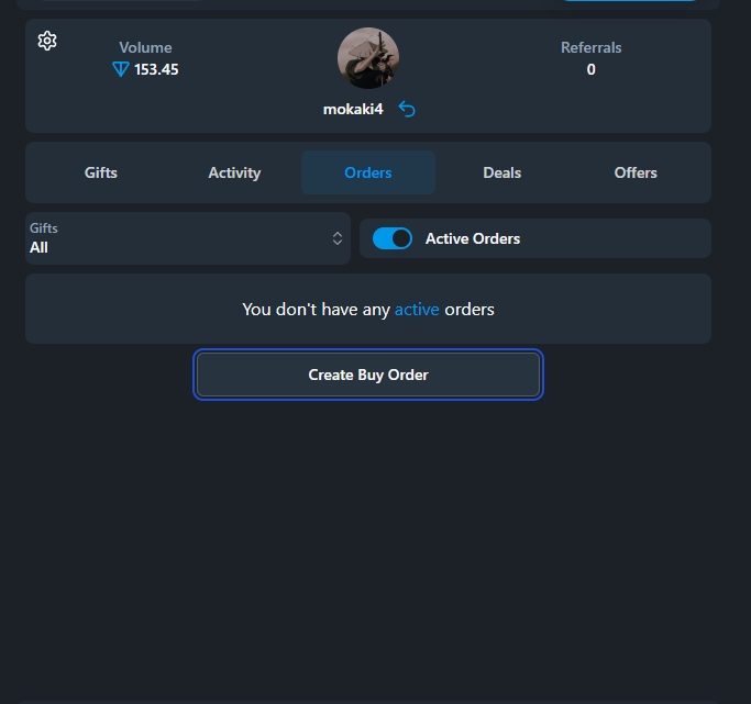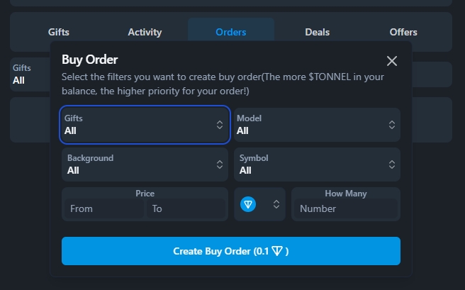 Здесь вы можете создать свои ордера на покупку подарки