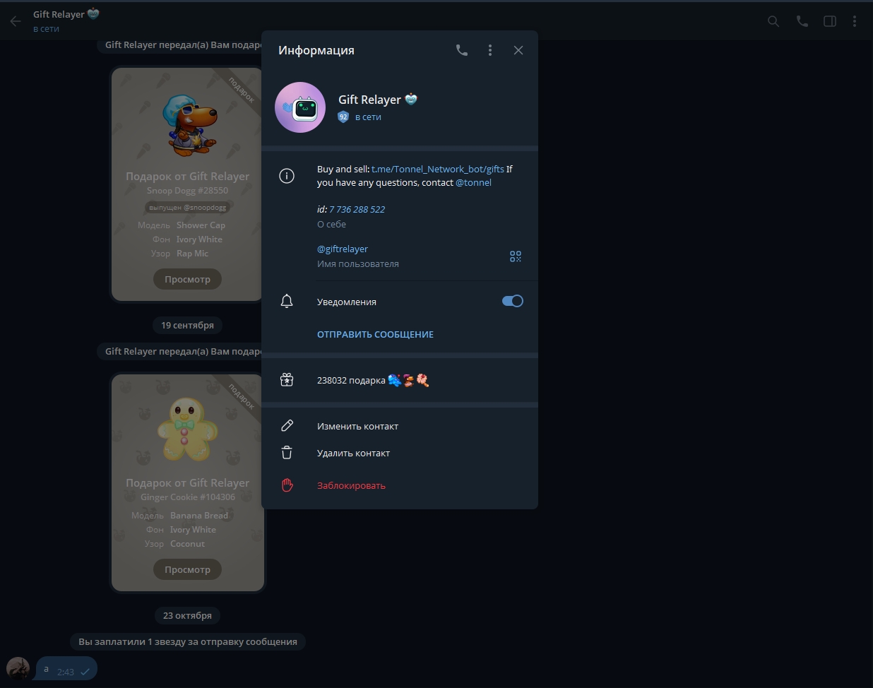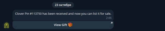 Нам приходит уведомление в @Tonnel_Network_bot, что подарок был добавлен на маркетплейс и что мы можем выставить его на продажу