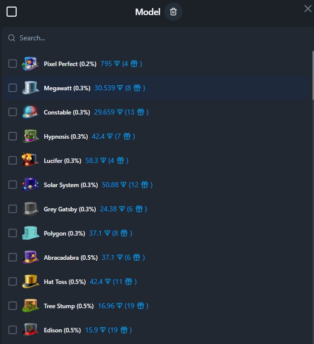 Model - тут выбираем интересующую нами модель подарка