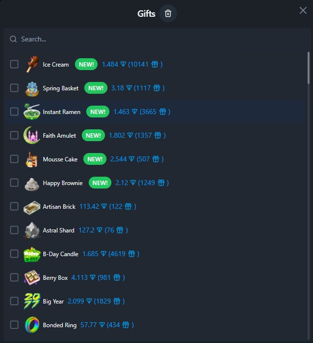 Подарки, которые нужно выставить на продажу/вернуть обратно на аккаунт