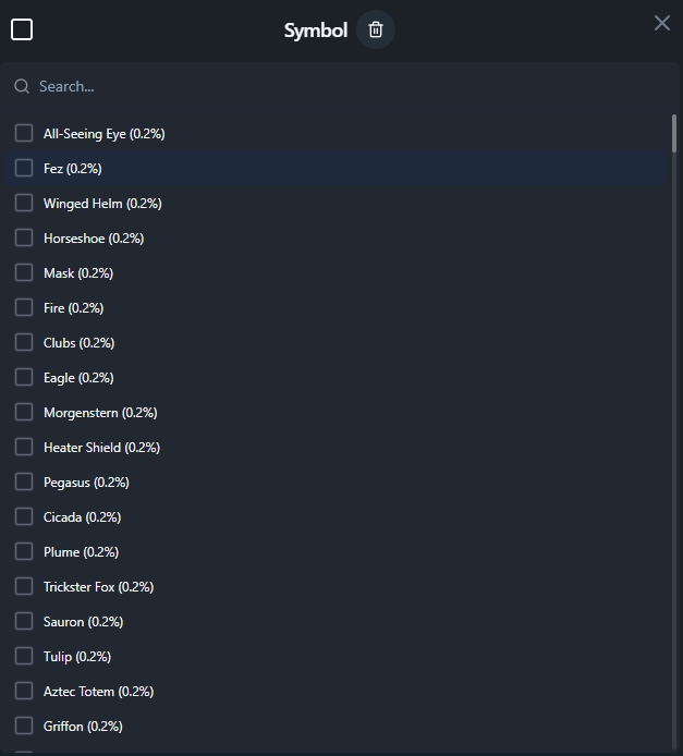 Symbol - выбор символа на фоне