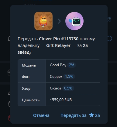 Нажимаем на "Передать за 25 звезд"
